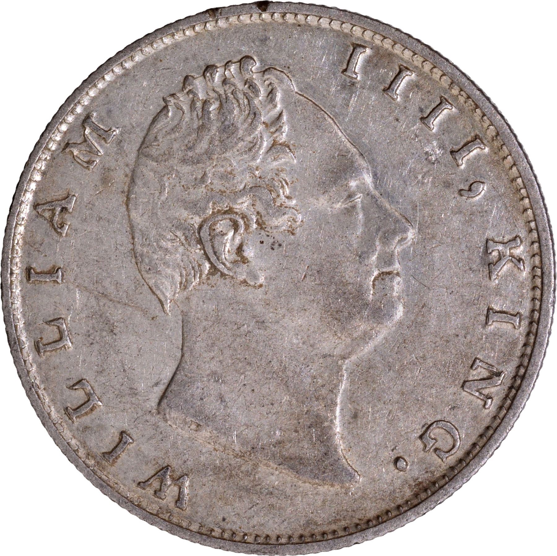 1835, King William IIII, Silver Rupee, Obverse D, Second Phase (Stage II), Calcutta Mint, F dugout (Big dug),19berries(10L+9R), crude & wavy style lettering on Obverse, D/III,(Unlisted in PR/GK # 28), mild toning on both sides, attractive quality, XF-AUNC, Exceedingly Rare.