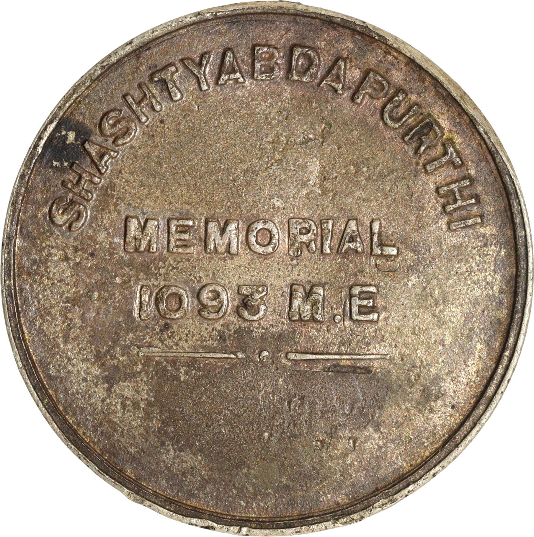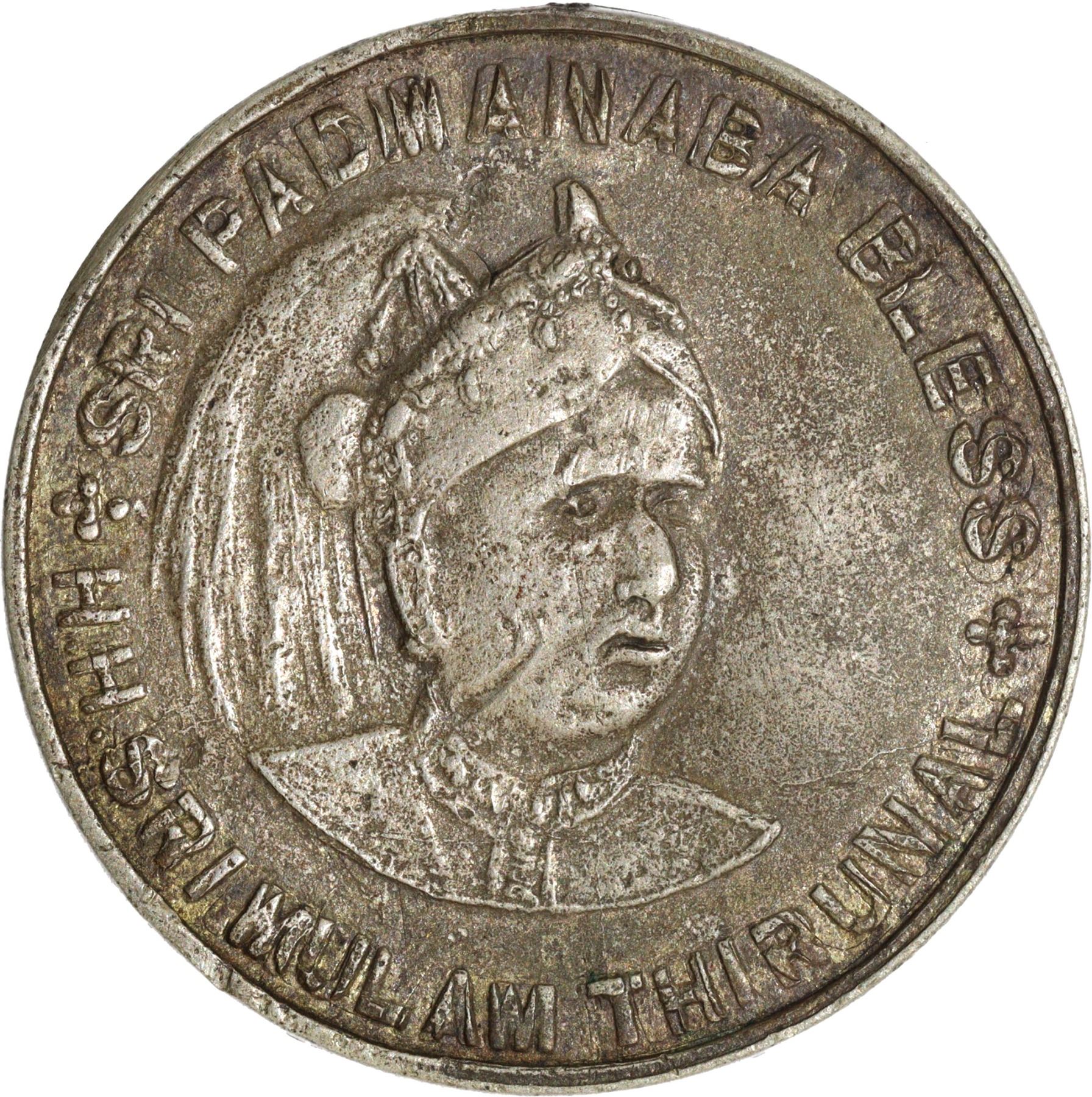 Travancore, 60th Birthday of Sri Mulam Thirunal, Silver Medal, 1093 ME, Obv: portrait of Sri Mulam Thirunal in the center, legend "SRI PADMANABHA BLESS/H.H. SRI MULAM THIRUNAL", Rev: legend "SHASHTYABDAPURTHI/ MEMORIAL 1093 M.E", 6.9g, 26.80mm, (B.Sarasan # Medal 1.2), about extremely fine, Exceedingly Rare.