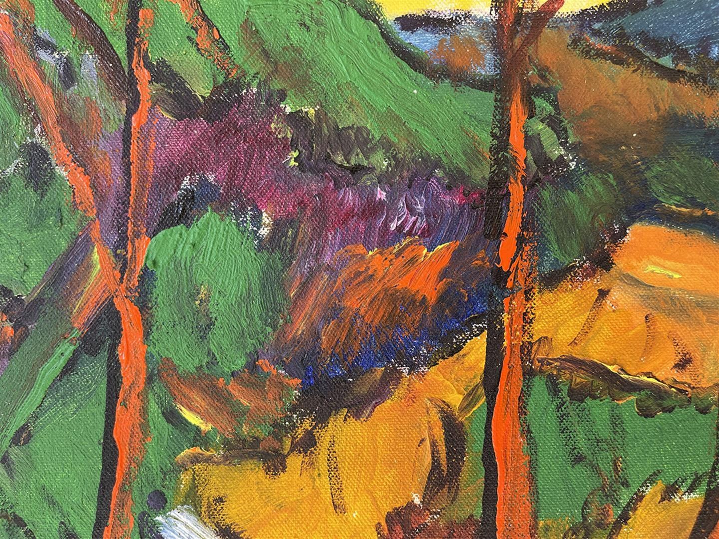 Excellent original acrylic on canvas. Hand signed by Artist. This artwork comes framed ready to hang. Art size16x20 inches. Frame size 22x26.