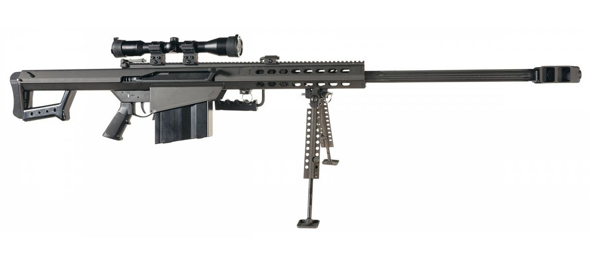 Excellent Barrett M82A1 Semi-Automatic 50 BMG Rifle with Scope, Extra Magazine and Case