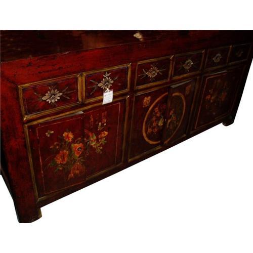 The antique furniture is a piece of exquisite chinese Qing dynasty's sideboard made of wood gathered from Hebei province in China.A wonderful piece for a room that can hold it.At the beginning of the Qing Dynasty, furniture followed Ming patterns and styles.Qing Furniture showed its own uniqueness with the absorption of western art. It was larger in size with grandeur and pageantry.Engraving was a popular and important means of furniture decoration. The subjects range from auspicious character patterns, to geometric patterns and scenes in nature with animals, mountains and waters, flowers and grass. Color painting, especially gold painting, was widely used.Commercial symbols emerged, such as patterns concerning money and fortune.To later Qing furniture has less engraving ,instead ,inlays of stone, porcelain and bone, which catch the eye more easily than exquisite engraving, are used to tell of the luxurious lifestyle of the owner. In addition, color and gold painting become the vogue depicting the preference for gaudiness by the wealthy.