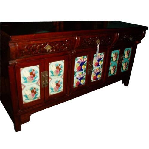 The antique furniture is a piece of exquisite chinese Qing dynasty's sideboard made of wood gathered from Hebei province in China.A wonderful piece for a room that can hold it.At the beginning of the Qing Dynasty, furniture followed Ming patterns and styles.Qing Furniture showed its own uniqueness with the absorption of western art. It was larger in size with grandeur and pageantry.Engraving was a popular and important means of furniture decoration. The subjects range from auspicious character patterns, to geometric patterns and scenes in nature with animals, mountains and waters, flowers and grass. Color painting, especially gold painting, was widely used.Commercial symbols emerged, such as patterns concerning money and fortune.To later Qing furniture has less engraving ,instead ,inlays of stone, porcelain and bone, which catch the eye more easily than exquisite engraving, are used to tell of the luxurious lifestyle of the owner. In addition, color and gold painting become the vogue depicting the preference for gaudiness by the wealthy.