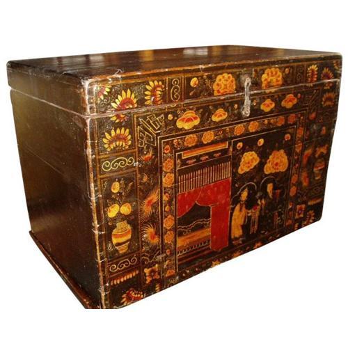 The antique furniture is a piece of exquisite chinese Qing dynasty's trunk made of wood gathered from Hebei province in China.A wonderful piece for a room that can hold it.At the beginning of the Qing Dynasty, furniture followed Ming patterns and styles.Qing Furniture showed its own uniqueness with the absorption of western art. It was larger in size with grandeur and pageantry.Engraving was a popular and important means of furniture decoration. The subjects range from auspicious character patterns, to geometric patterns and scenes in nature with animals, mountains and waters, flowers and grass. Color painting, especially gold painting, was widely used.Commercial symbols emerged, such as patterns concerning money and fortune.To later Qing furniture has less engraving ,instead ,inlays of stone, porcelain and bone, which catch the eye more easily than exquisite engraving, are used to tell of the luxurious lifestyle of the owner. In addition, color and gold painting become the vogue depicting the preference for gaudiness by the wealthy.