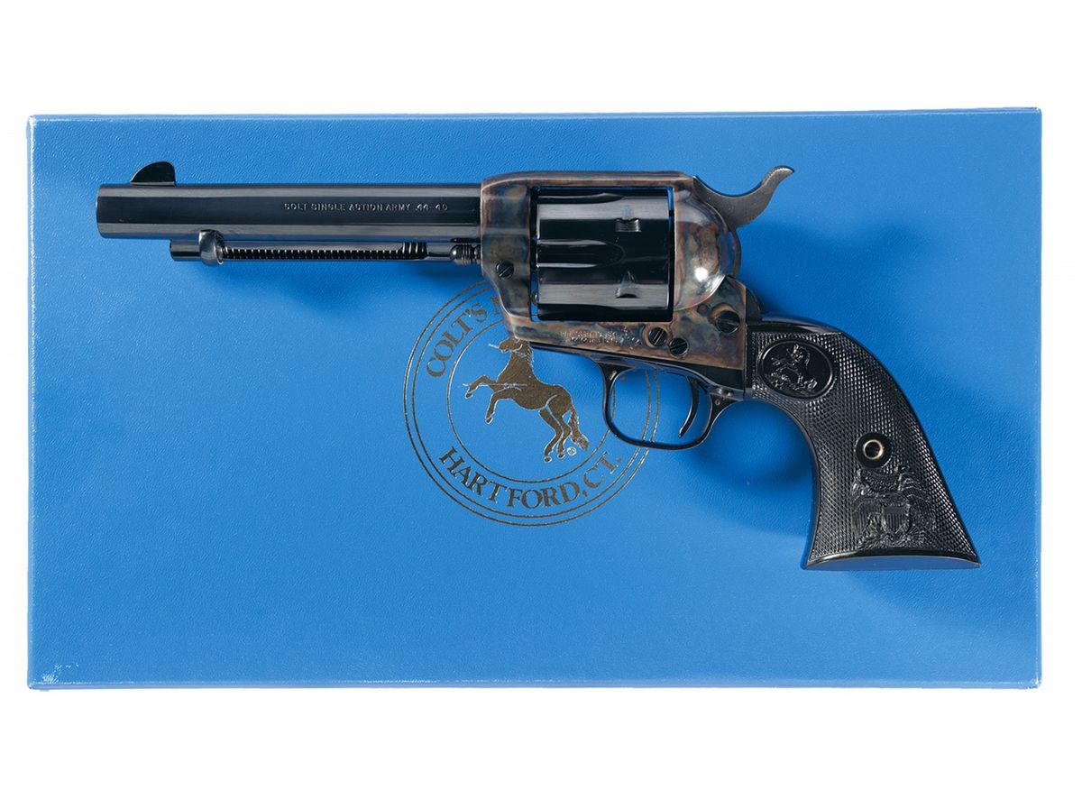 Manufactured in 1994. Fixed sights with standard markings and features. Checkered Rampant Colt/Federal Eagle relief grips. Complete with Colt factory blue box, white shipping sleeve with Colt label numbered to the gun and papers.