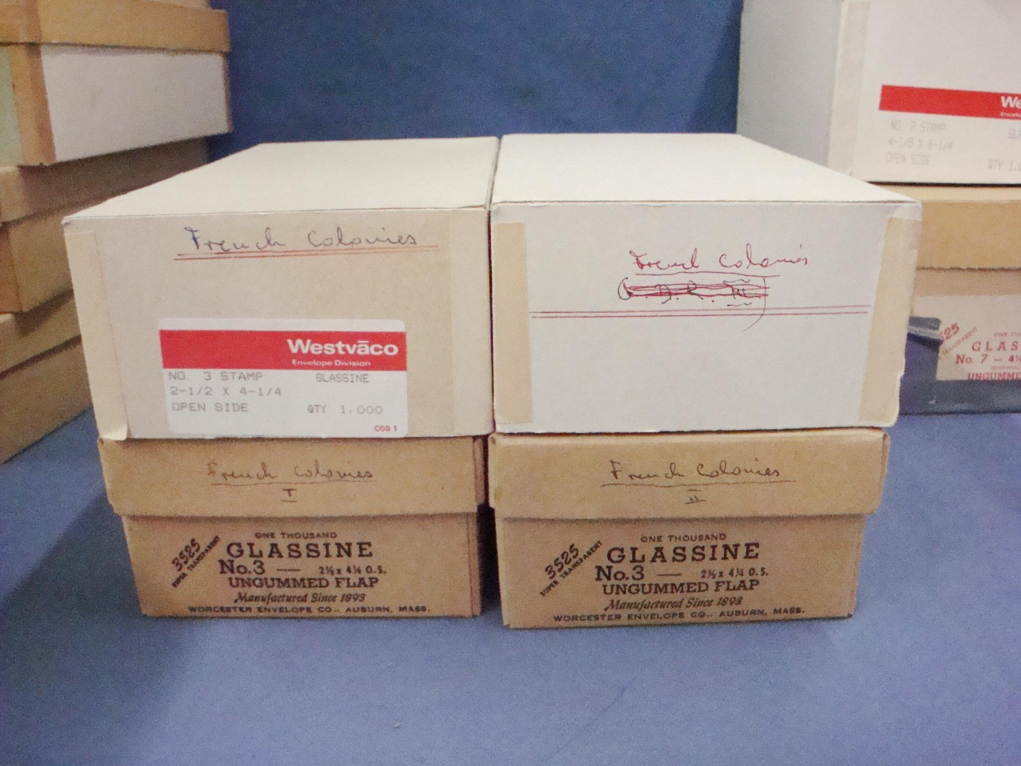 Neatly all unused with most being never hinged, all identified in glassines and sorted by country in (4)glassine file boxes. A wealth of material replete with $1-20 items with I'm sure scattered better. Well worth review. Est.$500-700