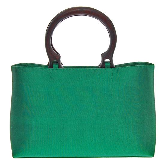 Excellent well crafted new heavy silk piece with mango handles and zippered main section; 12" $249 retail