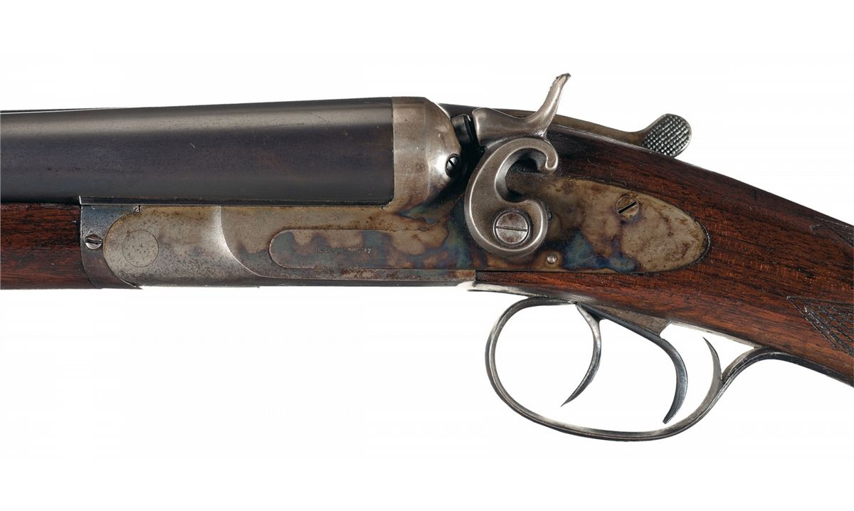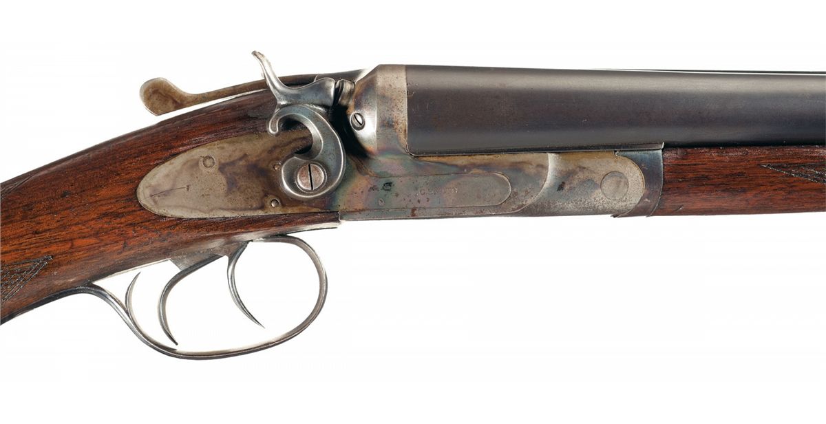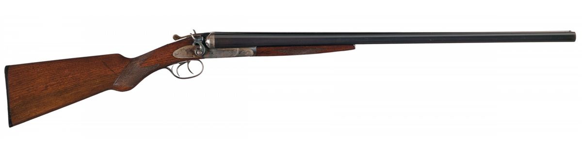 Manufactured from 1890 to 1913. Single bead sight on a solid rib marked "HUNTER ARMS. CO. FULTON, N.Y." and both sides of the receiver marked "L C SMITH". The serial number is located under the forearm and "ROYAL STEEL" is marked underneath each barrel. Both barrels are modified choke with an extractor. Double triggers and tang safety. Multi-point checkered walnut forearm and pistol grip stock with serrated hard rubber buttplate. Length of pull is 14 1/2 inches.