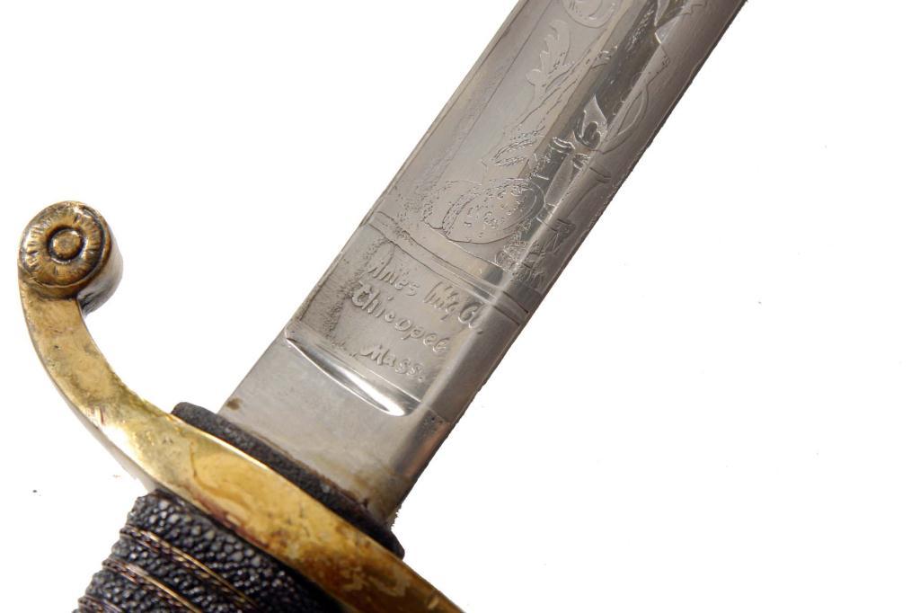 Excellent Modern Copy of Ames Artillery Saber With Ames markings etched on the blade. This one has fooled several experts. Measures 39 1/2" overall.With Ames markings etched on the blade. This one has fooled several experts. Measures 39 1/2" overall.