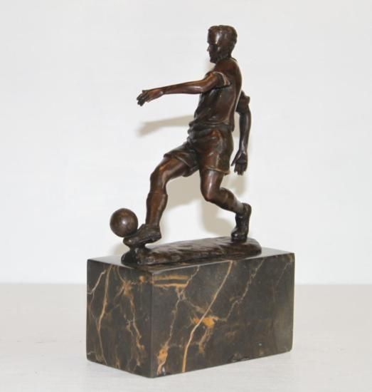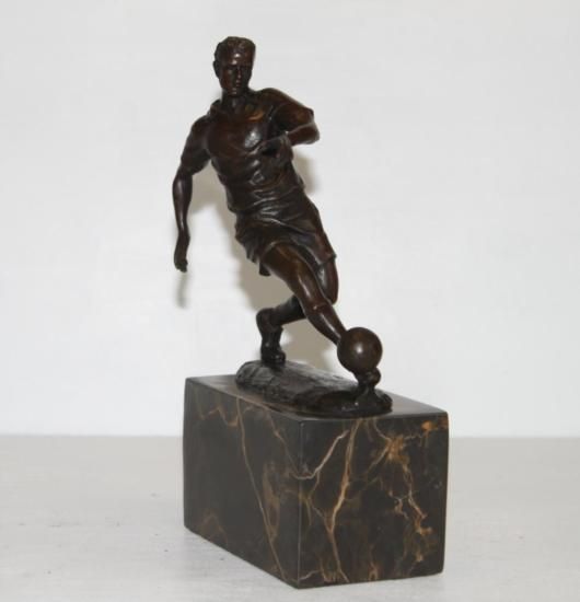 Excellent Soccer Player World Cup, Bronze Sculpture, After Milo 9"H x 5 3/4"W x 3"D 7 lbs. This bronze sculpture was produced using the Lost Wax casting method. The Lost Wax Cast method is the most precise metal casting technique in existence, ensuring exquisite detail of the original host model which is usually sculpted in clay or wax. This Lost Wax casting method is an extremely labor intensive and expensive process, but the end results produce a Heirloom Quality Masterpiece!