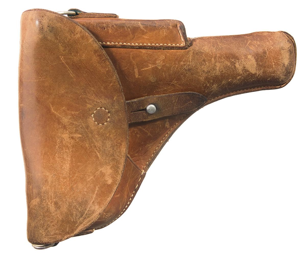 Condition: Excellent. The pistol retains approximately 98% original finish. The loss of finish is limited to the high edges and some mild slide wear, with a few minor scratches. The grips are excellent with only the slightest handling marks. The holster is very good with tight stitching and light scuffing of the leather overall.