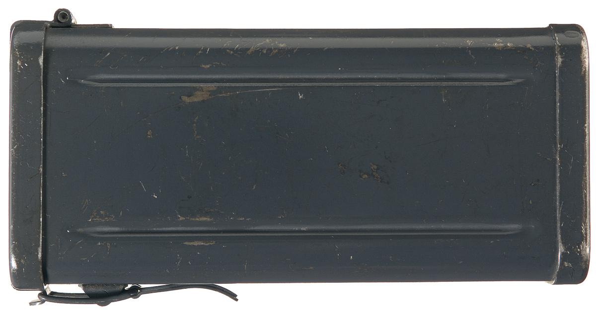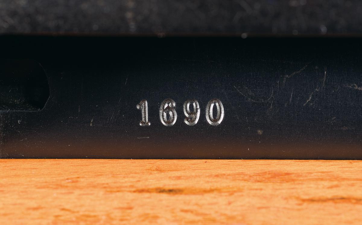 Condition: Very fine, with 80% plus original finish. The forward portion of the barrel has a smooth mottled gray patina, while the remaining surfaces retain almost all of the original blue finish with a few minor scratches and handling marks. The bipod shows some thinning and a number of minor scratches. The stock is very good with scattered minor dents, dings and scratches associated with a military weapon. The scope is excellent on the exterior and the optics are crystal clear. The sling is good. The scope case is excellent. A nice Swiss Model 1955 sniper rifle with all matching numbers.