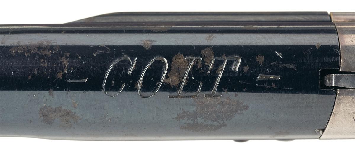 The "C/ Rampant Colt" marking was placed in response to inter-agencey hostility by the Colt London Agency following New York-based agents exporting First, Second and Third Model Derringers to England and selling them at below the established price structure, undercutting the London operation. The London Agencies responded by dropping their prices and introduced the "C" trademark to help establish themselves as the legitimate dealers in the area. German silver blade front sight, with "-COLT-" on top of the barrel, "41 CAL" and "C/ Rampant Colt" on the left side of the frame. Smooth trigger and checkered hammer, with a fill silver finish on the frame and a pair of smooth fine walnut bird's head grips.