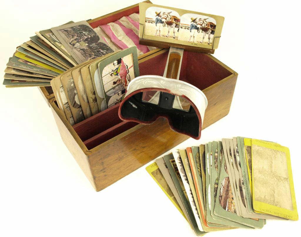 hand engraved to met marked HC White company Exposition Universelle International 1900. Includes 46 stereoview cards, period case in oak with fitted compartment, 14" long.