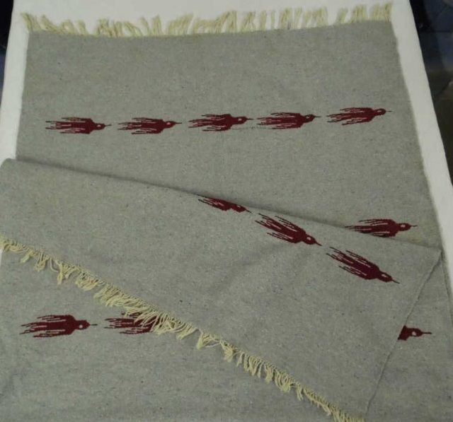 82 X 44" with red bird effigies.