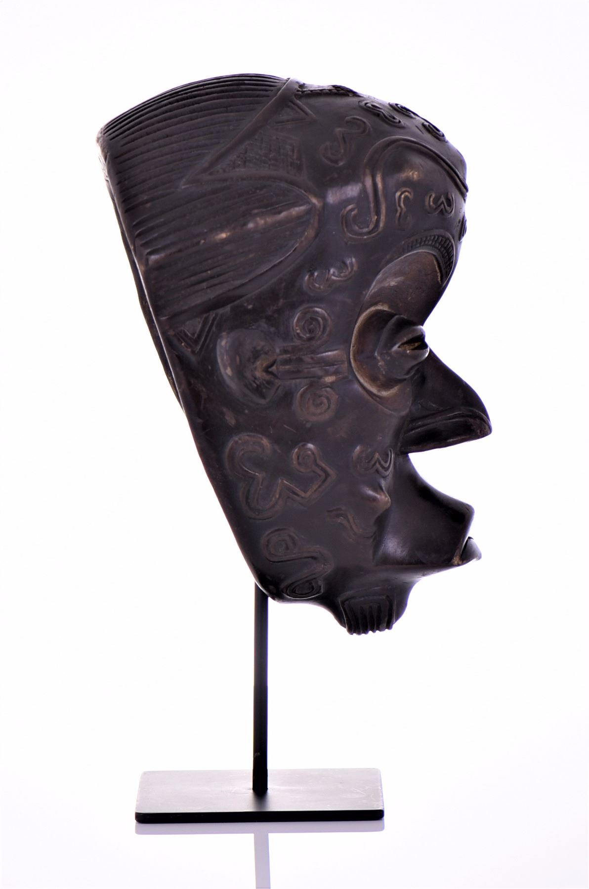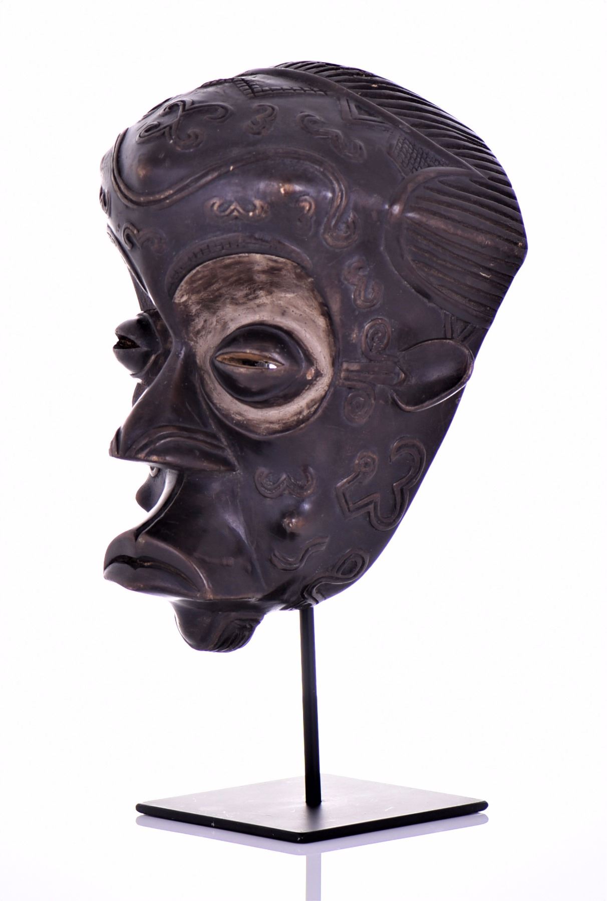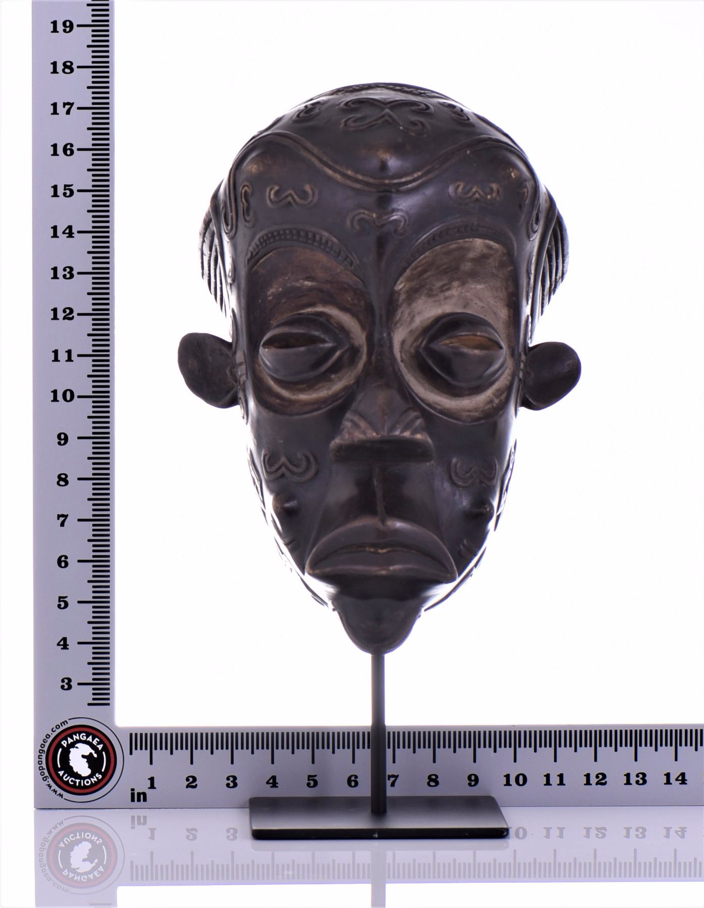 Exceptional African Lulua Wood Mask, Congo. Heavily Danced. Provenance: Ethnographic Tribal Museum Collection (See Auction Catalog Description). Some Lots Have Been On Exhibition, Stand Not Included. Estimated more than 50 yrs. old. African art is a term typically used for the art of Sub-Saharan Africa. A few of the most popular traditional African art was produced by the tribal people of the Fang, Dan, Baoule, Dogon, Senufo, Makonde, Bambara, and San. Most African sculpture was historically in wood and other natural materials that have not survived from earlier than a few centuries ago; older pottery figures can be found from a number of areas. Masks are important elements in the art of many peoples, along with human figures, often highly stylized and in vast variety of styles. Sculpture is most common among "groups of settled cultivators in the areas drained by the Niger and Congo rivers. Direct images of deities are relatively infrequent, but masks in particular were made for religious ceremonies. Later West African cultures developed bronze casting for reliefs, like the Benin Bronzes, to decorate palaces and for highly naturalistic royal heads from around the Yoruba town of Ife, in terracotta as well as metal, from the 12th to 14th centuries. Akan gold weights are a form of small metal sculptures produced over the period 1400–1900; some apparently represent proverbs, contributing a narrative element rare in African sculpture; and royal regalia included impressive gold sculptured elements. Many West African figures are used in religious rituals and are often coated with materials placed on them for ceremonial offerings. Eastern Africans, in many areas shorter of large timber to carve, are known for Tinga Tinga paintings and Makonde sculptures. There is also tradition of producing textile art. Modern Zimbabwean sculptors in soapstone have achieved considerable international success. Southern Africa's oldest known clay figures date from 400 to 600 AD and have cylindrical heads with a mixture of human and animal features. (Wikipedia) Size and/or Weight: See Measurement Photo. (Photos Represent The Lot Condition, Pangaea Auctions)
