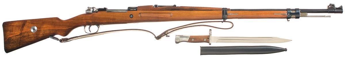 Condition: Excellent plus to mint overall with 99% plua original prewar blued finish. The wood is also near mint overall with only a few light handling marks. The rifle has all matching numbers including the bayonet which along with the scabbard are both excellent. This obviously unissed example would be hard to upgrade and would certainly be the centerpiece of any Mauser rifle collection.