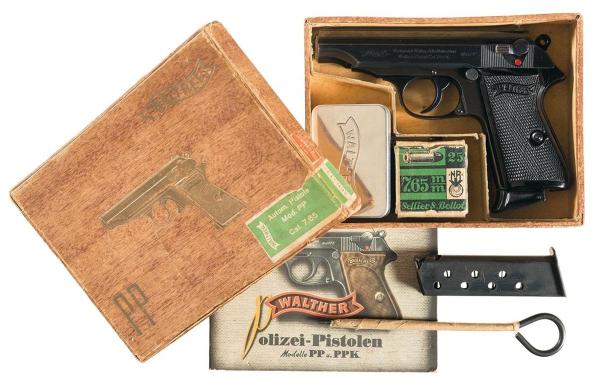Exceptional Captured Gestapo, SS Documented, Walther Model PP Pistol with Original Box and Accessories