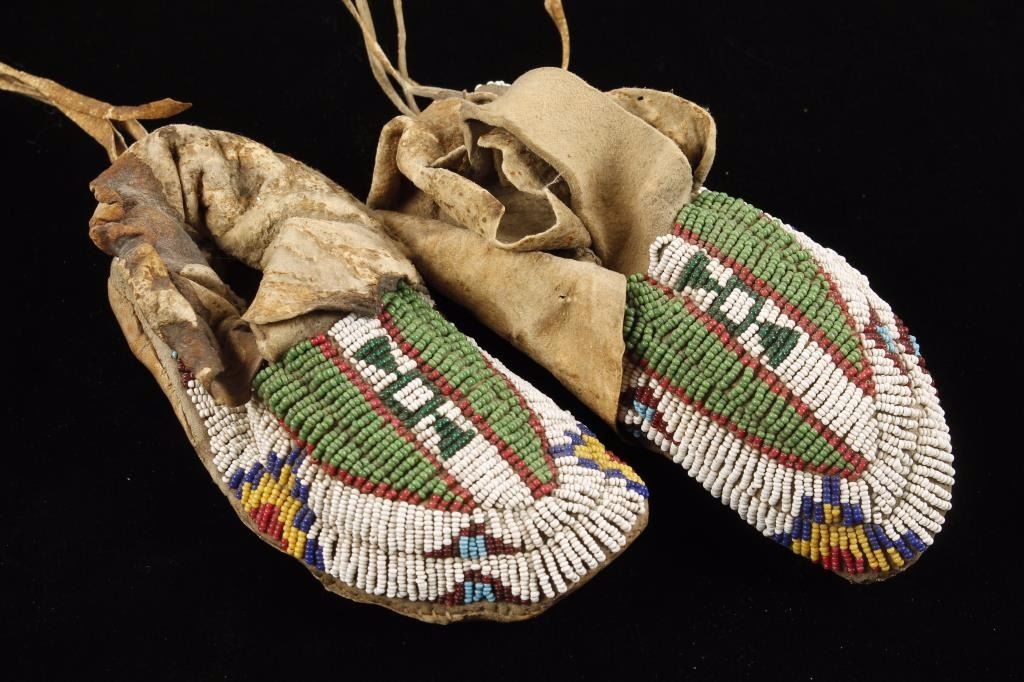 Vibrant Beadwork in primary color with a geometric design, shows age. In good condition.