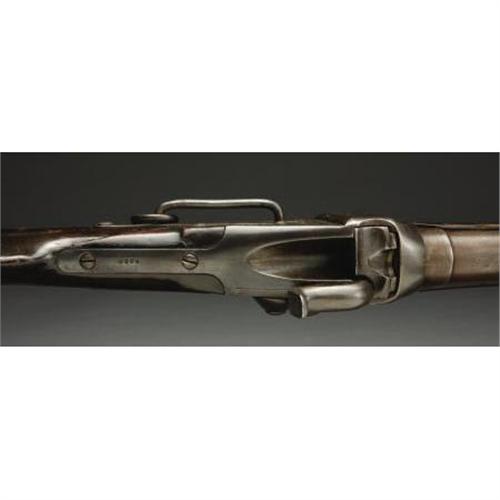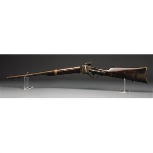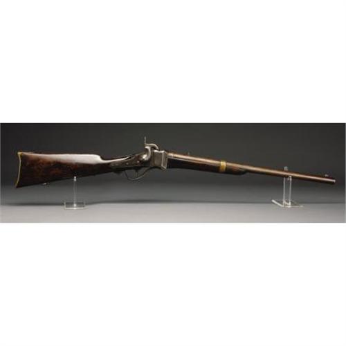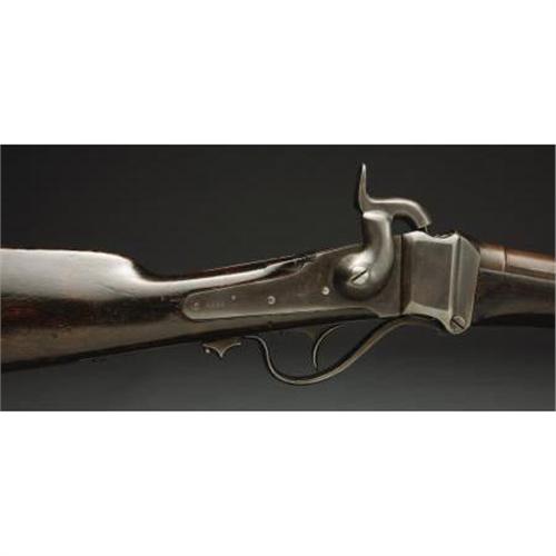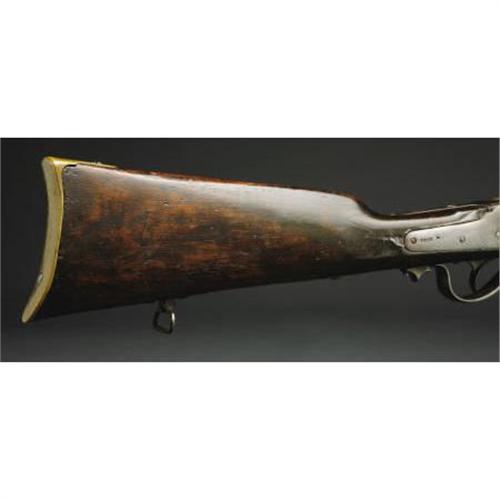 <B>EXCEPTIONAL CONFEDERATE RICHMOND SHARPS CARBINE.</B></I> Serial number 2628, Second Type (Flayderman 10 - 055). A rather early second type probably produced in 1863. This model was manufactured under the auspices of the Confederate central government subsequent to March 1863 after their acquisition of S. C. Robinson’s factory. As with all Confederate primary longarms, which characteristically saw very heavy use and have a very low survival rate, an example with exceptional condition is truly a great rarity. This is such an example. Metal is overall smooth and crisp with a nice untouched patina and remains of blue/ case colors on the frame. Deep crisp markings with serial #2628 on the tang and tail of lock, “Richmond, Va.” on the top of the barrel near breech. Bore excellent with deep sharp rifling, mechanically perfect with tight crisp action. Brass butt plate and barrel band with nice patina. Original saddle ring, bar, and butt swivel. Wood with old varnish finish with deep dark patina underneath. Minor hairline at left of tang and two small chips with old filler, really very minor. Wonderful saddle wear on cheek side of butt testifying to its suspension from a carbine sling on horseback. A truly exceptional example of this rare and very desirable primary Confederate cavalry carbine. <BR><BR><b>Shipping:</b> Requires 3rd Party Shipping (<a target="_blank" href="http://www.heritageauctions.com/common/shipping.php">view shipping information</a>)