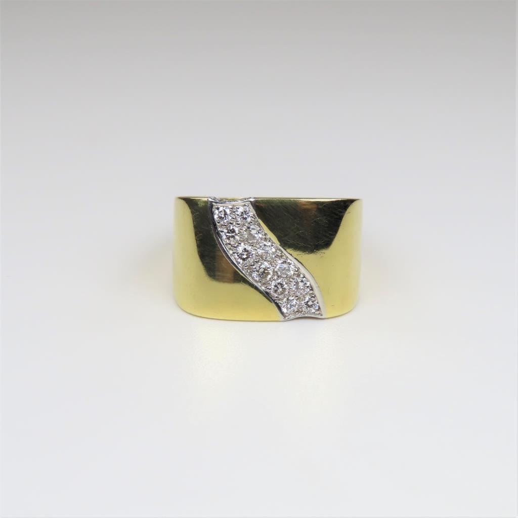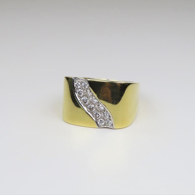 Made Diamond Ring with modern sculptured style featuring 16 Pave set ‘IDEAL’ cut Diamonds weighing approx. 1.00 carats with G-H colors and Extra Fine VVS/VS clarity. Retail $4,000-$5,000