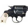 Manufactured in 1929. The left side of the barrel is marked "POCKET/POSITIVE" followed by "32 POLICE CTG." with the top of the barrel having the two line address and patent dates on top. The left side plate has the Rampant Colt and the right side of the frame is engraved with the inscription "T.G. YOUNG" inside a banner. Matching numbers on the frame and crane. Blue finish with polished hammer sides and fitted with pearl grips featuring Rampant Colt medallions at the top. Complete with the original hinged lib box numbered to the gun featuring the correct end and interior labels and "Special Instructions."