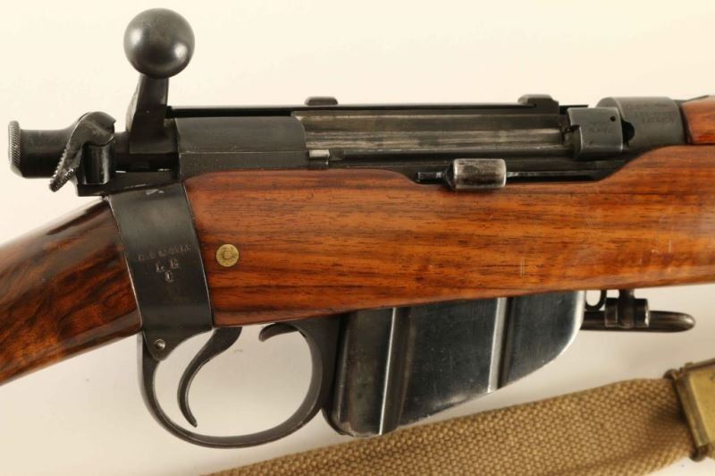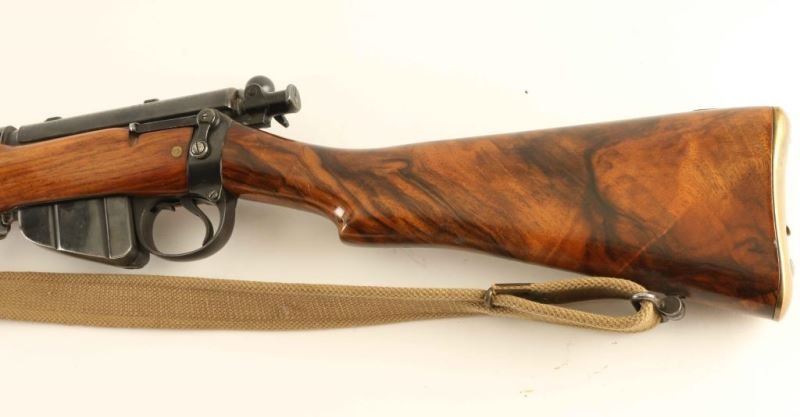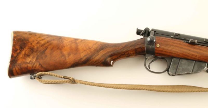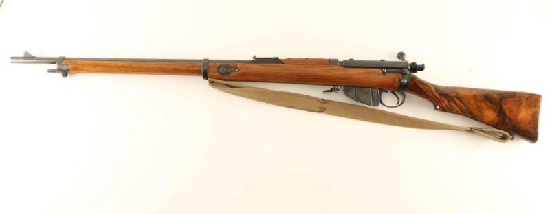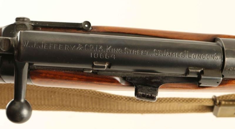 SN: 7006/C64 .303 caliber magazine-fed bolt action sporting rifle produced by London Small Arms Co & retailed by W.J. Jeffery & Co of London. Features a blued finish, 30.2" barrel, ramped inverted 'v' front sight, flip-up ladder rear sight graduated to 1,800 yards, volley sights, metal forend cap/barrel band with bayonet lug & provisions for a cleaning rod, serrated trigger, detachable magazine with cut-off on the right side of the receiver, dust cover & manual safety on the bolt, tan canvas sling, smooth wood hand guard, full length forend, and straight grip burl wood shoulder stock with long tang brass trapdoor buttplate. The right side of the butt socket is marked 'L.S.A.Co.Ld/LE/I' and the dust cover is inscribed "W.J. JEFFERY & Co.13.KING STRRET. St JAMES.LONDON.S.W." The barrel is stamped "SPECIAL-GUN/BARREL-STEEL[three intertwined circled]FRIED,KRUPP/-ESSEN.-," "E" & 'NITRO PROVED." The receiver is marked "LEE-SPEED/PATENTS" and the forend cap is marked "RIGBY/PATENT'88." The serial numbers 7006 are found on the barrel, bolt handle, rear sight & on the back of the receiver and "C64" is found on the receiver ring & barrel where serial numbers are typically found. Rifle exhibits approximately 95% of it's blued finish showing only light wear. Action is smooth, the bore is excellent and the wood stocks are near fine with small blemishes & a repair in the forend. Condition is NRA Excellent ***Antique Firearm*** From The John F Sukey Collection