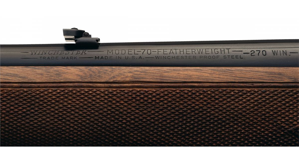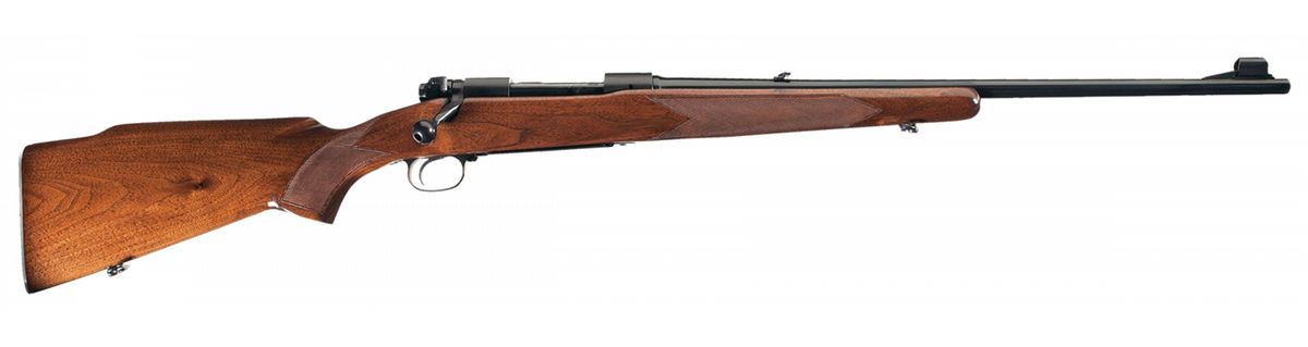 Manufactured in 1956 with a "type 6" hooded front ramp sight and an elevation adjustable flip up rear sight. The left rear side of the receiver is drilled and tapped for sight mounting with filler screws. The matte front receiver bridge and smooth rear receiver bridge are drilled and tapped for scope mounting with filler screws. Straight tang, "late" safety and a hollow bolt knob. Mounted on a nicely figured multi-point checkered walnut Monte-Carlo stock with sling swivels and a checkered aluminum buttplate.