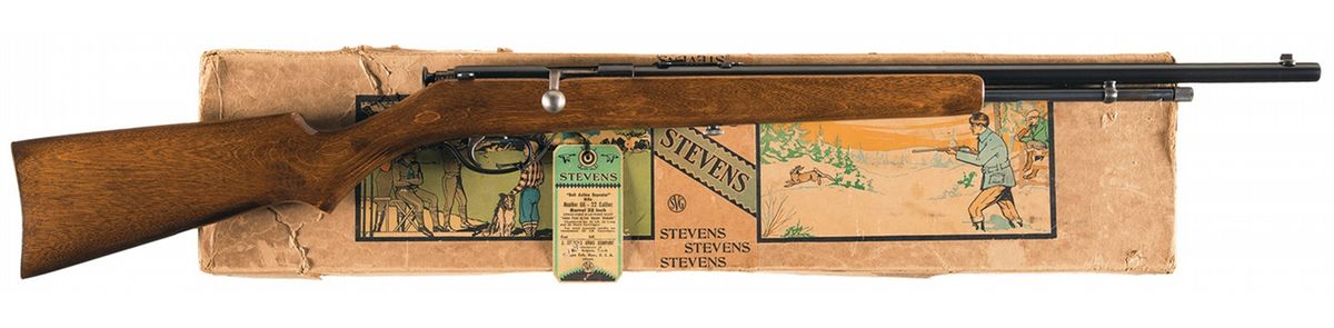 Exceptional Stevens Number 66 Bolt Action Rifle with Original Picture Box and Hanging Tag