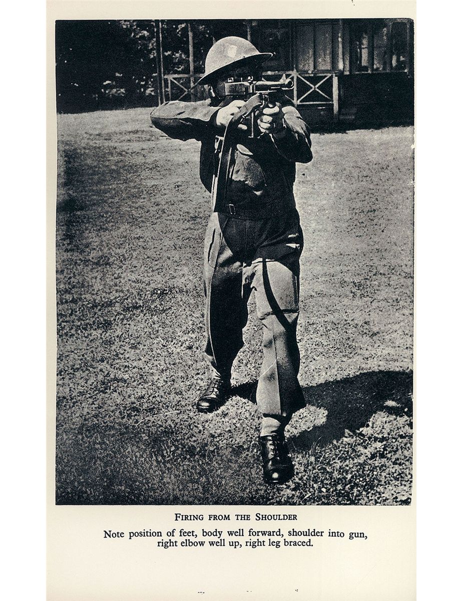 This is an excellent example of an original WWII Thompson M1A1 Submachine Gun (SMG) as introduced in April 1942. The M1A1 was simplified production version of the original Model 1928 Thompson SMG, intended for wartime production, making it easier and cheaper to manufacture. This version eliminated the barrel cooling fins, Cutt's compensator, adjustable rear sight and removable butt stock found on the earlier pre-war models. This example has the fixed rear sight, horizontal forearm, fixed butt stock and side-mounted cocking handle. The left side of the receiver is marked "THOMPSON SUBMACHINE GUN/CALIBER 45 M1/A1/NO. 432620" in three lines below the rear sight. The right rear of the receiver is marked "AUTO ORDNANCE CORPORATION/BRIDGEPORT CONNECTICUT U.S.A." in two lines. "US PROPERTY" is stamped on the top rear of the receiver behind the rear sight protector. The lower trigger housing and butt stock group is correctly marked with the "AUTO/SINGLE" and "FIRE/SAFE" markings. This SMG is complete with 5 green canvas magazine pouches, with 13 magazines total, a green canvas sling and green canvas carrying case. Included with the rifle is a WWII era U.S. manual.