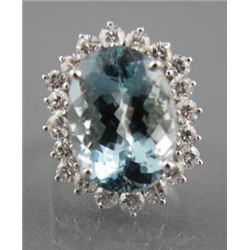 AQUAMARINE & DIAMONDS OVAL CLUSTER RING4A - AQUAMARINE & DIAMONDS OVAL CLUSTER RING