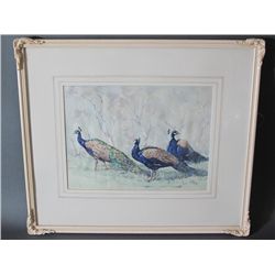 Australian [1898-1976] -untitled, Peacocks Size: 11 1/2 x 15 1/2 in. Framed: 21 1/2 x 25 in. Note: Stubbs is among the first aboriginal artists to ha