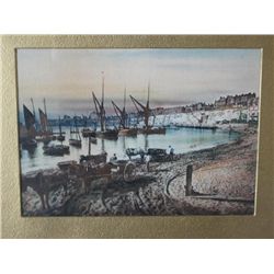 -each showing different views of a working harbour with an adjoining bathing beach. In period gilt frames with pierced ribbon and floral detailing.
