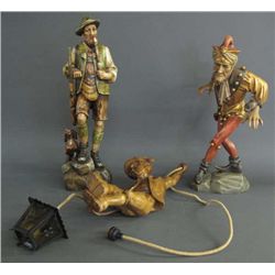 - includes a hanging miner holding a lamp, 18 1/2 in. high; a jester, 19 3/4 in. high; and a hunter smoking a pipe with dog, 21 1/2 in. high.
