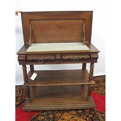 - French walnut sideboard with parquetry top with two freeze drawers and lower open shelf.