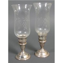 -a pair, with weighted sterling silver bases and etched glass shades.