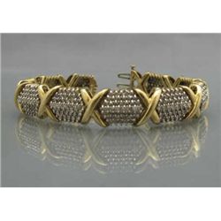 - 10kt yellow gold, 38.30gm with X shaped hinges.