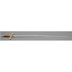 -third quarter 20th century, having pictorial engraving on one side, including Wilkinson attribution, gilt cross guard and walnut handle.