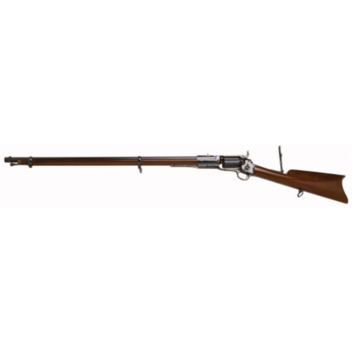 Exceptional and Scarce Model 1855 Sidehammer Sporting Rifle, with Fluted Cylinder Serial no. 576. .44 caliber, 6-shot fluted cylinder, 31 5/16-inch barrel. Topstrap of frame stamped within standard brackets:Colt's Pt1855and Address Col. Colt/Hartford CT U.S.A.One of the cylinder flutes stamped "Patented Sept. 10th 1850." On left side of rear bow of triggerguard, "44 Cal." Three leaf express style rear sight mounted on barrel breech, graduated for 100, 300 and 600 yards. Rare folding peep sight, adjustable for elevation, mounted on upper tang. Blade front sight on steel base, dovetailed at muzzle. Blued finish, with case-hardened hammer and loading lever. Varnished walnut stocks. Sling swivels mounted on rear barrel band and on rear of lower tang. Crescent buttplate of blued steel, with sliding compartment lid for extension to the steel cleaning rod. According to R.L. Wilson The Book of Colt Firearms, the total number made of the .44 caliber Model 1855 Sidehammer Sporting Rifle, in 31 5/16-inch barrel, was only 200. No. 576 is considered the finest known example. Note that serial no. 582, also of .44 caliber, with 31 5/16-inch barrel, is pictured in R.L. Wilson, The Arms Collection of Colonel Colt, on page 63 (item 42, described on page 64).Quite close to no. 576, serial no. 582 was made at the same time. Both rifles remain in excellent condition.Serial no. 582 was among the arms added to the collection, by specimens selected from the Colt factory. This was done to fill in gaps, for a display of artifacts and firearms at the Colt mansion, Armsmear. The latter Colts were added following the inventor's death, and were acquired on orders of his widow, Elizabeth Hart Jarvis Colt. This celebration of Colonel Colt was also expressed in Mrs. Colt's commissioning of the first Colt book, Armsmear The Home, The Arm, and the Armory of Samuel Colt. A Memorial.The excellent condition of serial no. 576, the desirable caliber, and the lengthy barrel help in establishing this Rifle as among the finest known examples of Colt Sidehammer longarms.Literature:American Arms Collectors Percussion Colts and Their Rivals The Al Cali Collection, pages 62-63.Provenance:Greg MartinAl Cali