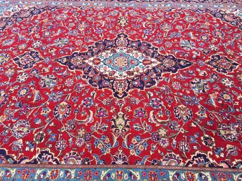 Exceptionally fine and spectacular large Persian Kashan. 100% natural vegetable, dye, hand woven, finest baby lamb's wool pile on cotton foundation. it is certainly rare and uncommon to come across Kashan Qamsar in the marketplace. Very few pieces are ever woven in this satellite town in the proximity of the city of Kashan. So it is no wonder that the few that are produced are of extreme high quality and artistic workmanship. Please notice the intricate design and well balanced color palette, combined with a superior baby lamb’s wool quality and highly dense weave, producing a well defined and crisp pattern. Where a typical Persian rug employs between twelve to sixteen colors, this lovely piece features over thirty eight different colors. This rug is masterfully hand woven, knot by knot, using superior quality baby lamb's wool with about 100 knots per square inch. It takes a master weaver over three years to create this beauty and bring it to the market. Size: 16 feet 2 inches X 11 feet 2 inches. Country of Origin: Iran.