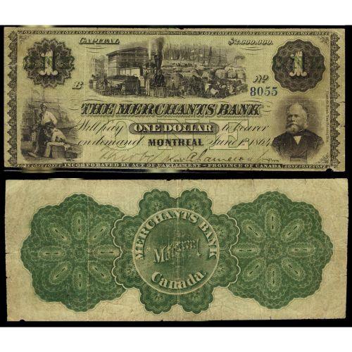 Excessively RARE Banknote! The Merchants Bank 1864 $1 #8055 CH-455-10-02 F+. Excessively rare issue.