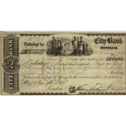 Exchange bill, City Bank of Montreal, Feb 12, 1864. Manuscript annotations on reverse, VF