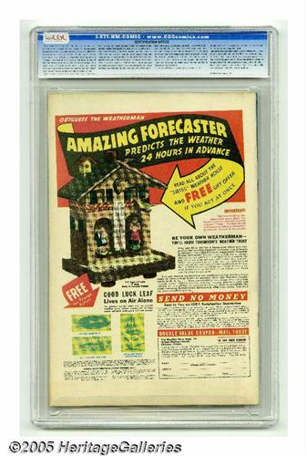 50. Auctioneer offers no opinion as to the validity of a grade assigned by any third-party grading service. Since we cannot examine C.G.A. encapsulated notes or Comics Guaranty Corporation (CGC) encapsulated comics, they are sold "as is" without our grading opinion, and may not be returned for any reason. Auctioneer shall not be liable for any patent or latent defect or controversy pertaining to or arising from any encapsulated collectible. In any such instance, purchaser's remedy, if any, shall be solely against the certification service certifying the collectible.