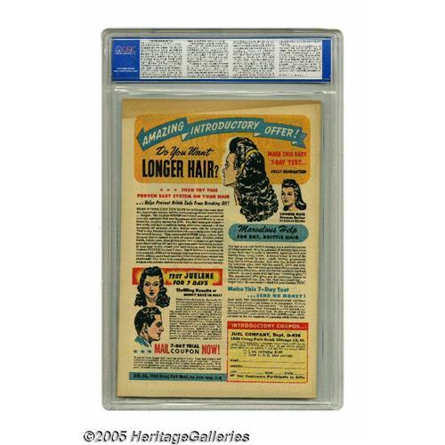 <B>Exciting Comics #46 (Nedor Publications, 1946) CGC VF/NM 9.0 Cream to off-white pages.</B></I> The Black Terror takes matters into his own hands, literally, with two armed thugs, but is disappointed to find he's not saving a grateful (and preferably winsome) lass - ""just"" a couple of bound G.I.s! The Alex Schomburg cover comes to life on this offering which sports the highest grade CGC has certified to date for issue #46. Overstreet 2005 VF/NM 9.0 value = $548; NM- 9.2 value = $740. CGC census 9/05: 2 in 9.0, none higher. <BR><BR><B>Important notice:</B> Heritage usually auctions material at the rate of 200-250 lots per hour. On some occasions eBay Live bid software or the Internet may not be able to keep up with the pace of the auction. We recommend placing a realistic absentee bid now as insurance to avoid disappointment. Occasionally the auctioneer may eliminate or reject an eBay Live bid, and the auctioneer may also reopen a lot after the close of the eBay live bidding (usually because we missed an audience bid), and may reject your bid even if it shows you as the winning bidder. By bidding via eBay Live, you agree that Heritage may award the lot to another bidder at its sole discretion under the circumstances described above or any other reasonable circumstances. Since eBay bids are not shown to us until we open the lot on the floor, we treat those bids just like floor bids. In most cases the floor responds before the eBay bid is presented to us, due to Internet lag time, so for consistency we have made it a policy that floor bids are always considered first over tie eBay live bids. Also please note that all Heritage lots purchased through eBay Live carry a 20% Buyer's Premium. Please make sure you read the Terms and Conditions before you bid. This lot is being auctioned in conjunction with a live floor auction by Heritage Galleries & Auctioneers. All final auction and invoice information will be supplied by Heritage Galleries & Auctioneers, and all other