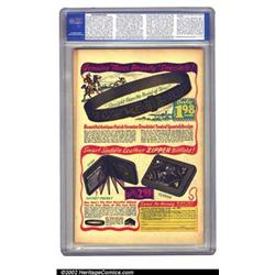 Exciting Comics #48 (Nedor Publications, 1946) CGC NM- 9.2 Cream to off-white pages. Here is another fantastic Alex Schomburg cover with all of the classic elements; a blonde damsel in distress, a bunch of bad guys wielding pistols and wearing bad hats and Lone Ranger-esque masks who are trying to get away with a bag that is clearly marked with what it contains (day's receipts). This happens to be a beautiful copy, well within the umbrella of Near Mint. Overstreet 2002 NM 9.4 value = $600. Important notice: We expect to be auctioning lots at the rate of 200-250 per hour. Sometimes eBay Premier live bid software cannot keep up with that pace, so we strongly recommend that you place a realistic proxy bid now as insurance to avoid disappointment. Also please note that all Heritage/CAA lots purchased through eBay Premier carry a 20% Buyer's Premium. Please make sure you read the Terms and Conditions.