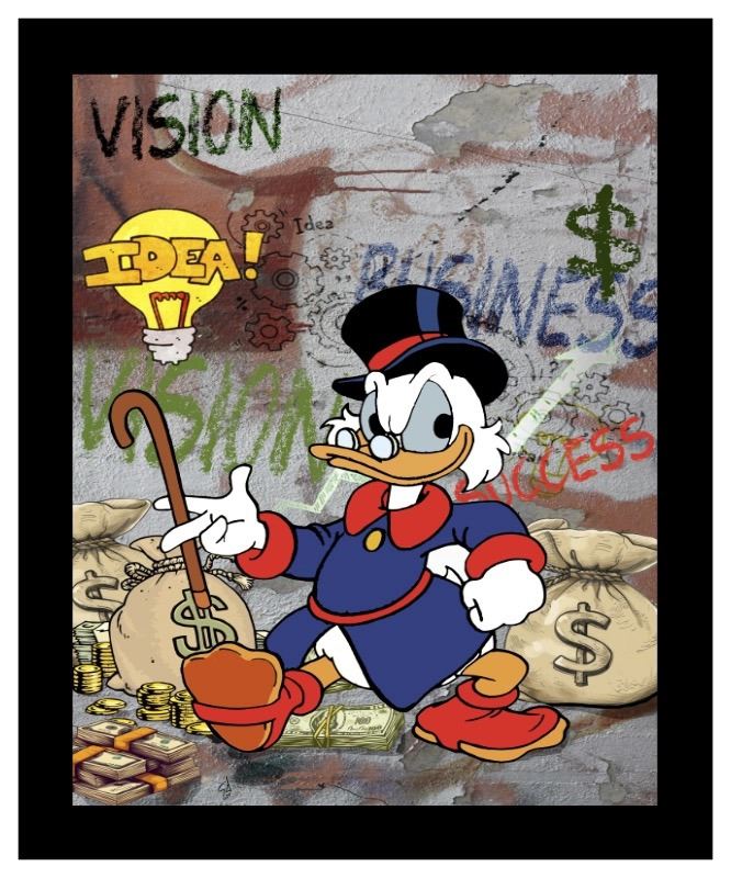Exclusive Artist "George Davis" Fine Art Giclee Canvas ''Scrooge McDuck Idea to Success'' Hand Signed - Ships in a Tube (24 x 20")