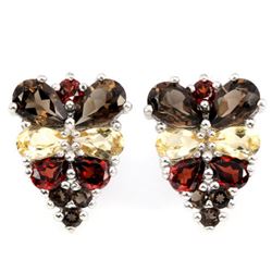 NATURAL SMOKY QUARTZ, CITRINE GARNET 925 SILVER EARRING 14K WHITE GOLD COATING; STONE SHAPEPEAR ROUND PORTUGUESE CUTSTONE DIMENSION6 X 4 MM. , 5 X 3