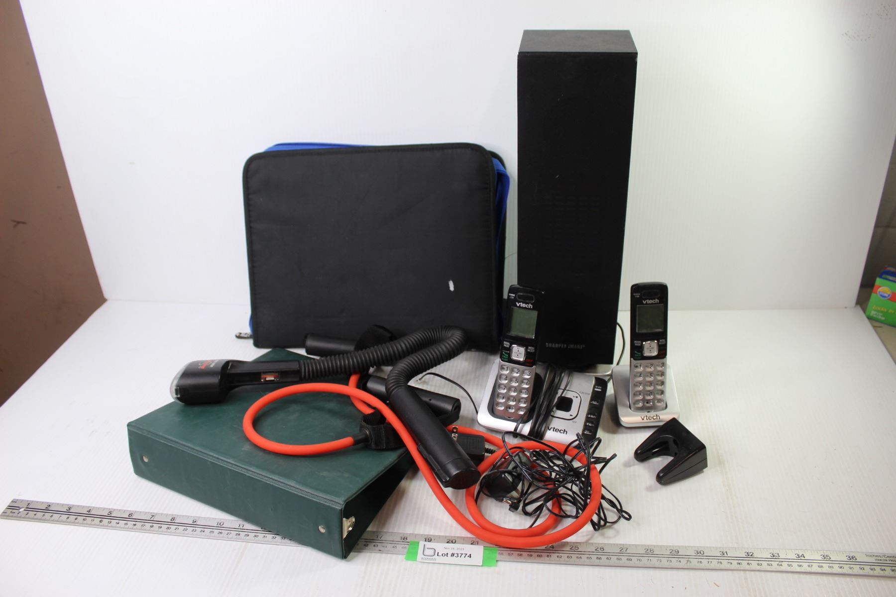 Exercise Strap - Sharper Image Speaker - Black & Decker Snake Light - (2) Vtech Phones & Chargers - (2) Binders