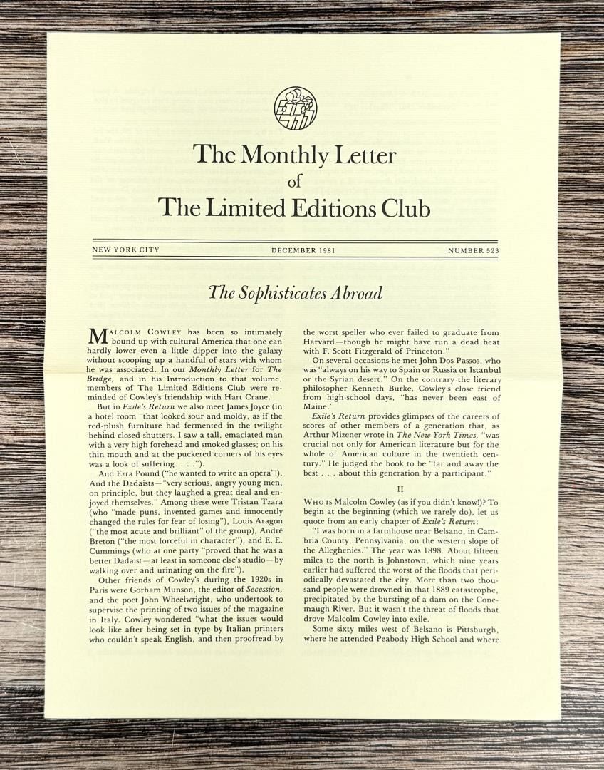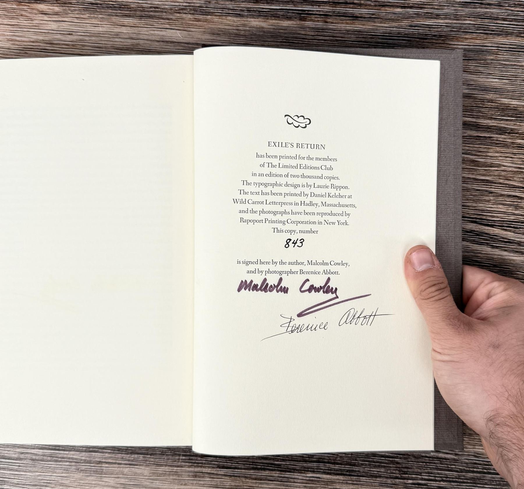 Malcom Cowley, 1981. Limited Editions Club 1582 of 2000. Author & Photographer Signed