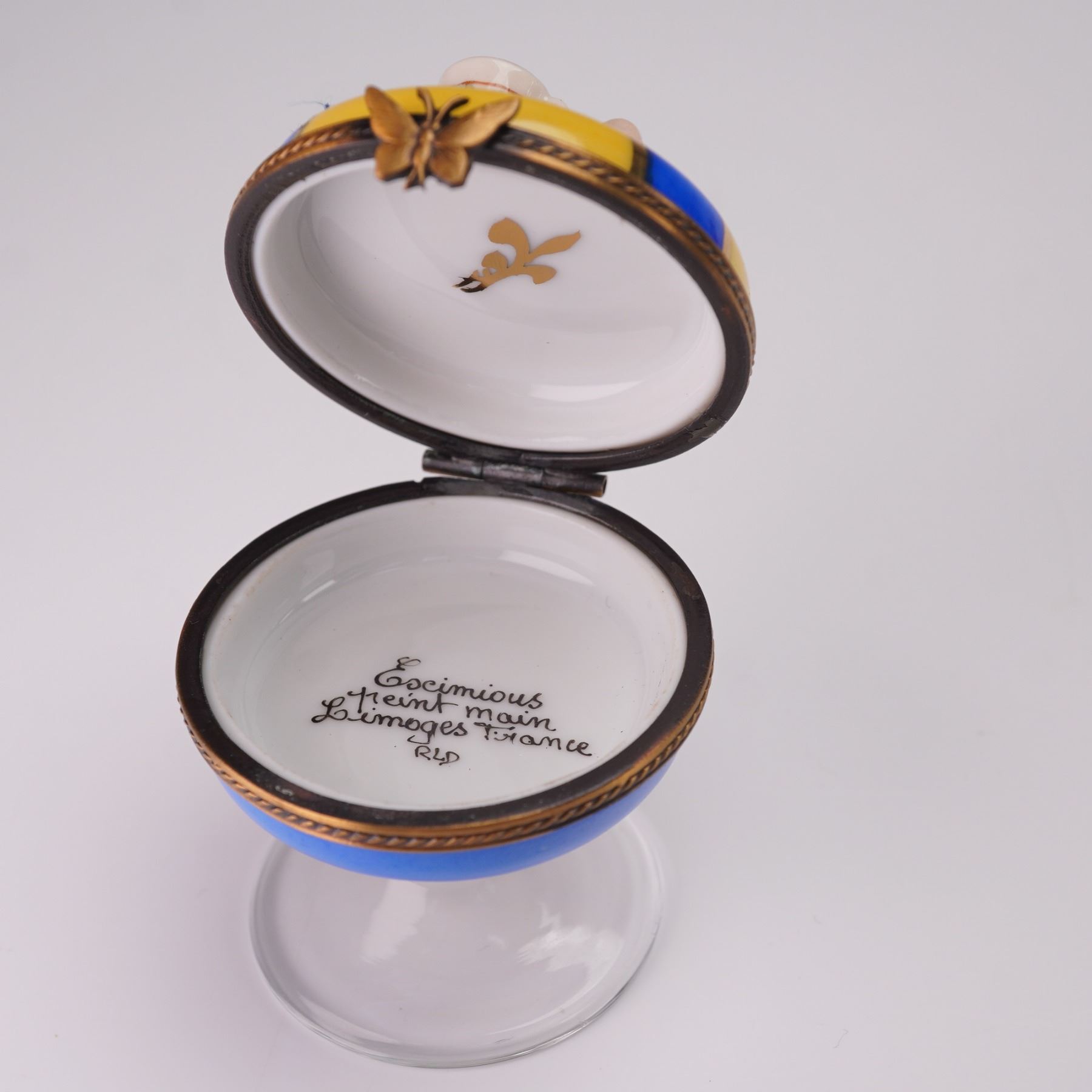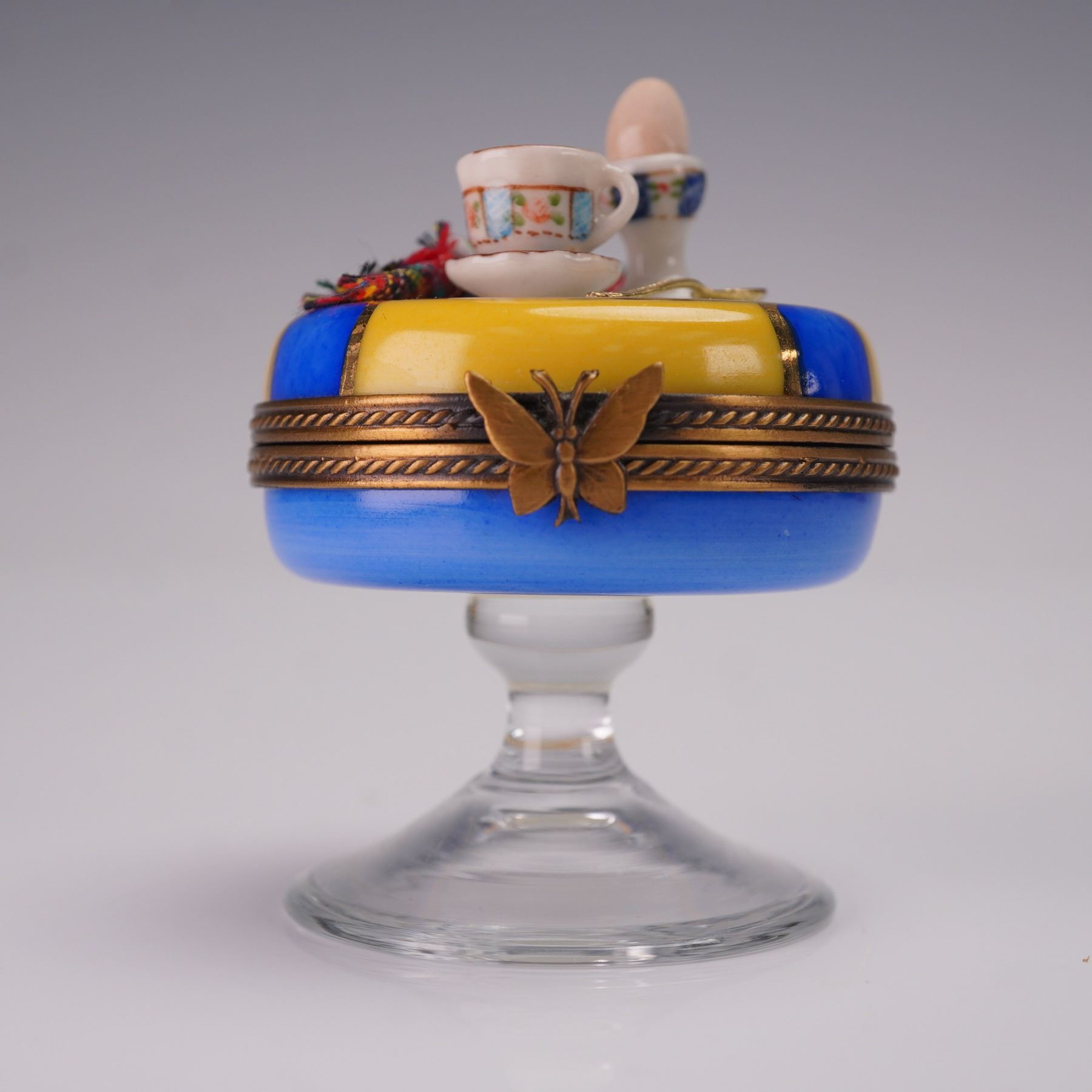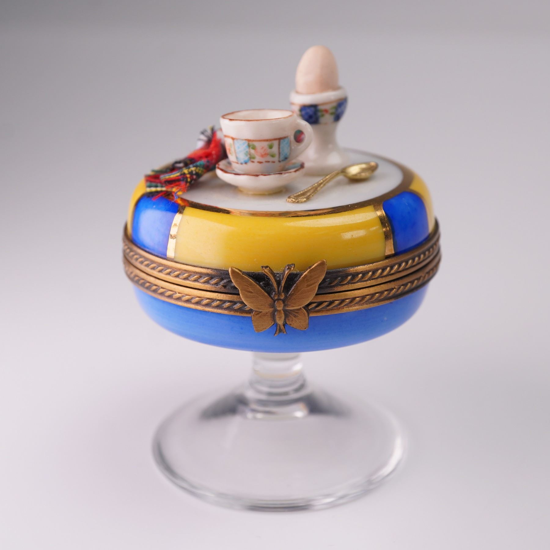 Eximious Limoges Porcelain Trinket Box, Breakfast Setting on Pedestal
