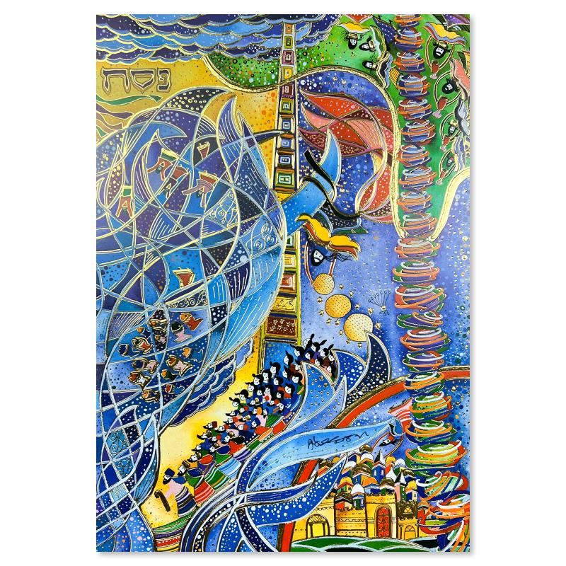 Exodus I by Abecassis, Raphael. "Exodus I" is a limited edition serigraph with gold foil on paper by Rafael Abecassis. The piece comes hand signed by the artist, numbered, and with a letter of authenticity. Measures approximately 13" x 9".